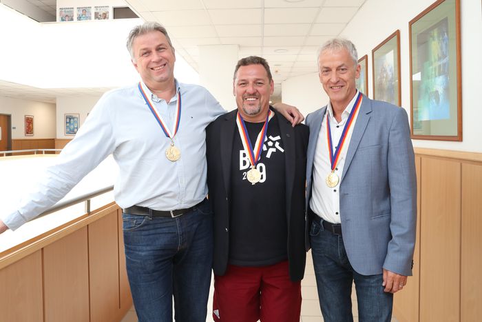 „Török Ferenc kapitányként minket úgy nevelt, hogy a csapat az első, azt kell megnyerni. Ezt mi mindig elfogadtuk, mert tudtuk, ha megvan a csapatarany, akkor kizárt, hogy egyéniben ne szerepeljünk jól. Szerintem a két társam is ugyanezt válaszolná erre a kérdésre. A Jani és az én gyengébb lövészetem nem zavarta Attilát, mert mi meg vívásban voltunk jók, amiben meg ő nem. Szóval, kiegészítettük egymást, és nem volt gond, hogy valamiben a másik kevesebb pontot hozott, nem mondtuk egymásnak, hogy jobban kéne lőnöd vagy vívnod. Ettől tudtunk ilyen eredményesek lenni. Tartjuk a kapcsolatot, de Janit többet látom, mert vele a sport ma is összeköt, hiszen szövetségi kapitányként az öttusában maradt. Örültem, hogy a nemzetközi szövetség az év edzőjének választotta, mivel minden korosztályban sikeresek volt a versenyzői. Tud bánni a gyerekekkel... Attila, vagyis Rizsa az okos fiú, mindig büszke voltam rá, hogy ilyen társam van. Vele is összefutunk néha, ritkábban, mint Janival” – sorolja Fábián, aki sportvezetői pályafutását 1995-ben a Budapesti Honvéd öttusaszakosztályának elnökeként kezdte. 1996-tól a Magyar Olimpiai Bizottság tagja, 2013. elejétől a MOB sportigazgatója, majd megbízott főtitkára, 2022. április elsejétől pedig a szervezet főtitkára.