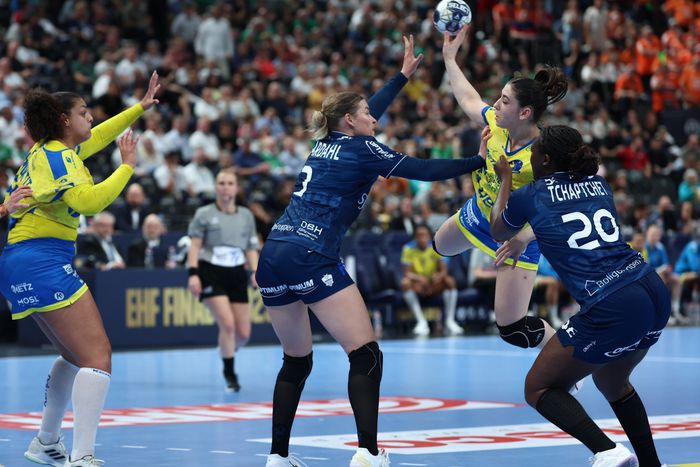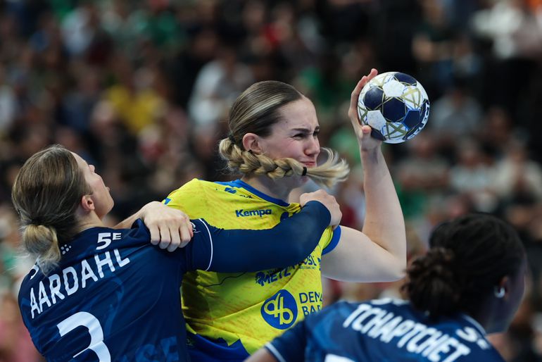 A 18. percben a magyar válogatott kapus kapott lehetőséget, Szemerey Zsófi érkezett Aagot Hansen büntetőjére, s a kapufa segítségével sikerült is hárítania a dán lövését. Egy perccel később az idény végén visszavonuló Allison Pineau bombázott a kapu bal alsó sarkába, találatával ismét kétgólos előnyre tett szert a Metz. (10–8) A franciák számára azonban nem tartott sokáig az öröm, a két együttes az első félidőben fej-fej mellett haladt, hol itt, hol ott zörgött a háló.