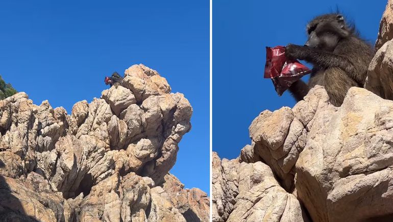 Észrevettük, hogy egy pimasz majom a parton hagyott táskáikban túrkál. Amikor pedig kiabálva elkezdtünk felé szaladni, valamivel a kezében villámgyorsan felfutott egy sziklára…