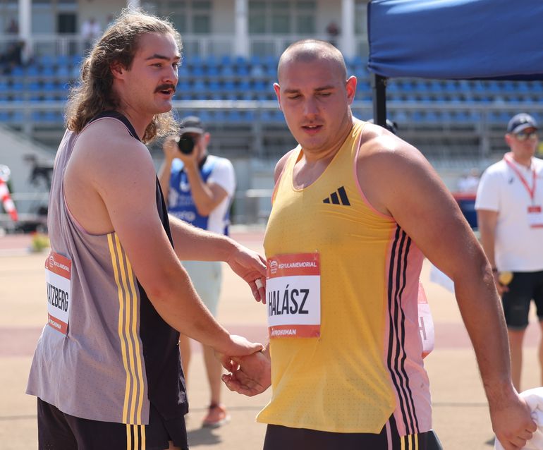 Na, de akkor vissza a Bregyó közhöz! Rögtön az első számban, a férfi kalapácsvetésben láthattuk – mi, újságírók és a nagyjából kétszáz néző (később jöttek még legalább kétszer ennyien) – az olimpia egyetlen magyar éremesélyesét, Halász Bencét. Meg azt is: borzasztó nehéz dolga lesz vb-bronz- és Eb-ezüstérmesünknek, ha Párizsban dobogóra akar állni. Itt A Gyulain ez most nem sikerült neki, mert ugyan az ötszörös világbajnok lengyel Pawel Fajdeket megelőzte, de az olimpiai bajnoki címvédő másik lengyellel, Wojciech Nowickivel, és a két ifjú titánnal, az ukrán Mihajlo Kohannal (őt az Eb-n még megelőzte), továbbá a tavaly világbajnokságot nyerő, idén az örökranglista 9. helyére feljövő (84.38) kanadai Ethan Katzberggel nem bírt. Utóbbi úgy nyerte meg a versenyt, hogy első három dobása mind 80 fölötti volt, nem kétséges, ő az olimpia topfavoritja.