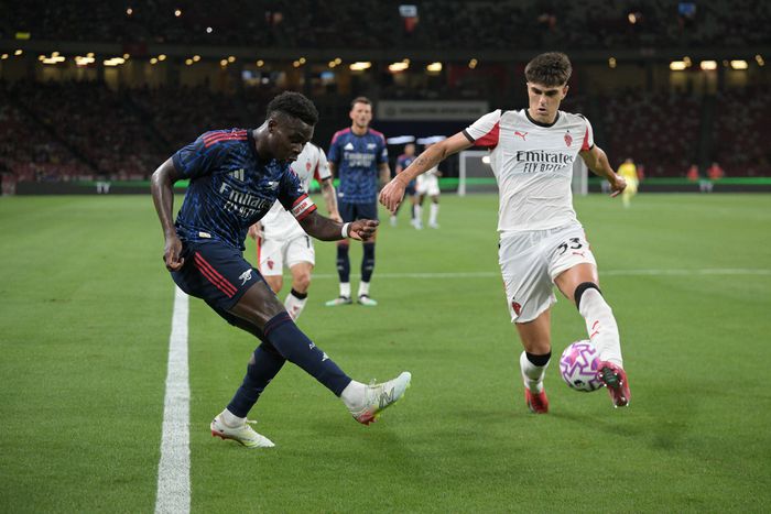 Bukayo Saka finishes off a beautiful cross to put Arsenal ahead against AC Milan ⚽ pic.twitter.com/zckB0vHVs1