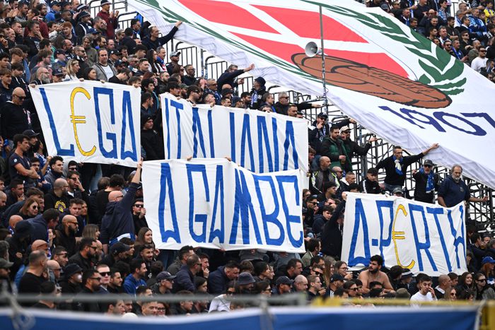 A Como legfanatikusabb tifói tovább mentek, és egy csípős transzparenst is kifeszítettek a témában, szójátékkal élve: L€ga Italiana: legs spread o-P€rth, ami úgy fordítható, hogy