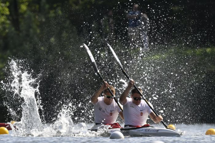 A szombat délutáni középfutamos programban minden számban az első három hely ért finálét. Nádas Bence és Kopasz Bálint címvédőként versenyez Németországban, s eddig magabiztos teljesítményt nyújtott. Most sem volt ez másként, ugyan a nagyon bekezdő németektől kikaptak, de a második helyük és a továbbjutásuk nem forgott veszélyben. A döntőben az első hat hely ér majd párizsi indulási jogot, de mivel Nádas a négyessel már szerzett egy kvótát, Kopasz teheti teljessé a magyar férfi kajakos olimpiai csapat létszámát, amely maximum hat lehet.