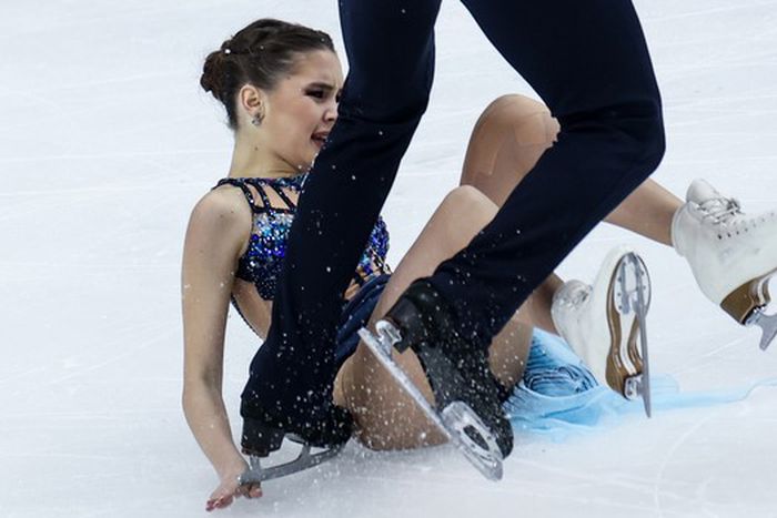 A Szofija Kacsuskina, Mark Volkov kettős hölgytagja a jégre huppant, és millimétereken múlt, hogy partnerének éles korcsolyája ne vágja le a letett keze hüvelykujját. Szerencsére Volkovnak sikerült korrigálnia a veszélyes helyzetet, lábát megemelve átugrotta partnerét, majd felsegítette őt.