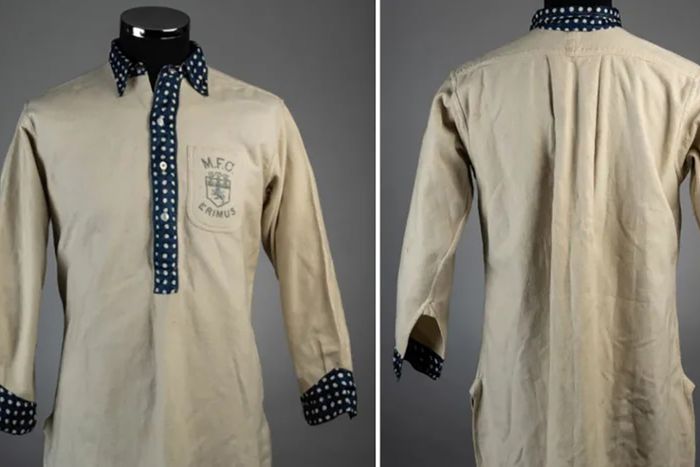 A különleges dressz 1886 és 1890 között készülhetett, gyapjúból van, és a kor szokásainak megfelelően gombos gallért és pöttyös mandzsettát is kapott. A mezt a middlesbrough-i E. Banks gyártotta és a címeren az M. F. C. ERIMUS felirat látható.