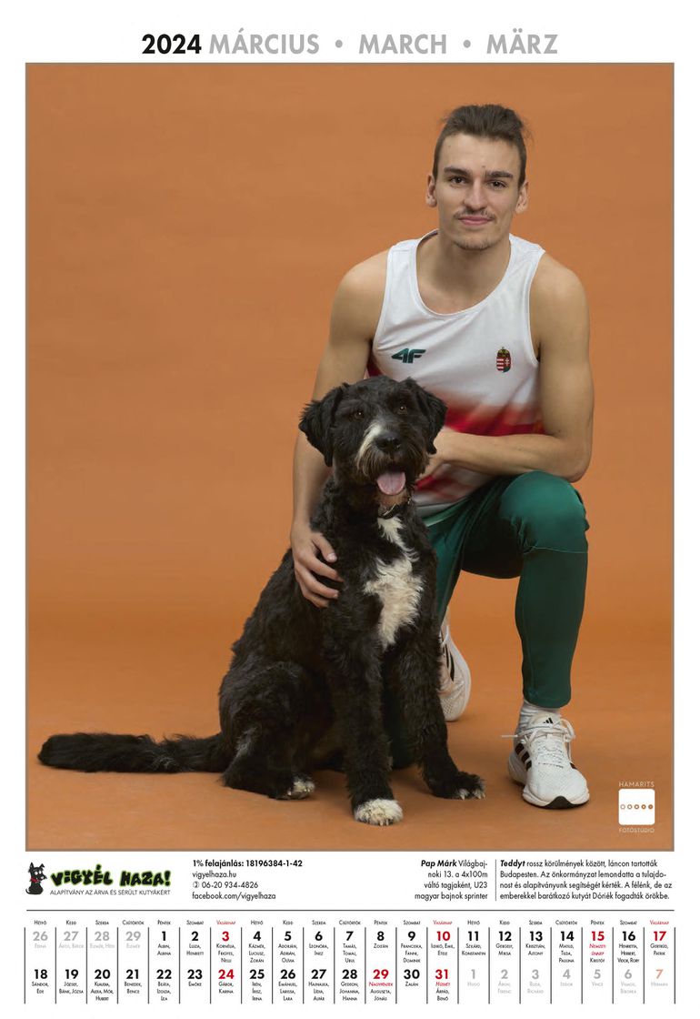 A Vigyél Haza Alapítvány 2024-es naptárjában legjobb atlétáink szerepelnek árva kutyusokkal, akiket örökbe lehet fogadni.