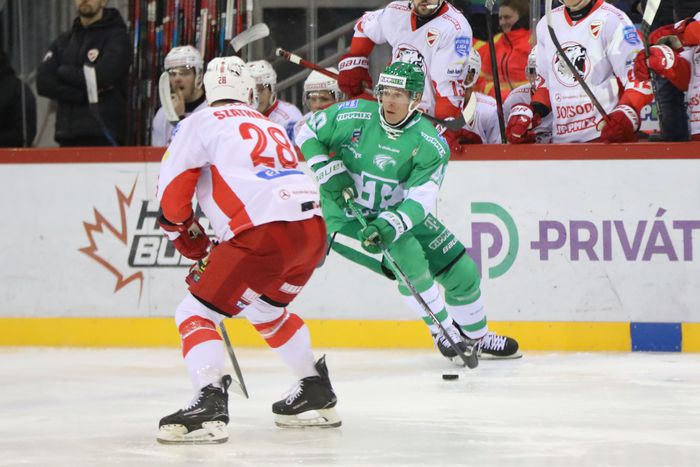 Az utolsó perc is tartogatott meglepetést a középső harmadban, egy újabb hatalmas hiba a Ferencváros kék vonalánál, Anthony Luciani pedig köszönte szépen és a kapussal szemben meg is oldotta, ezzel pedig megfordította az elején elveszettnek tűnő találkozót. (3–4)