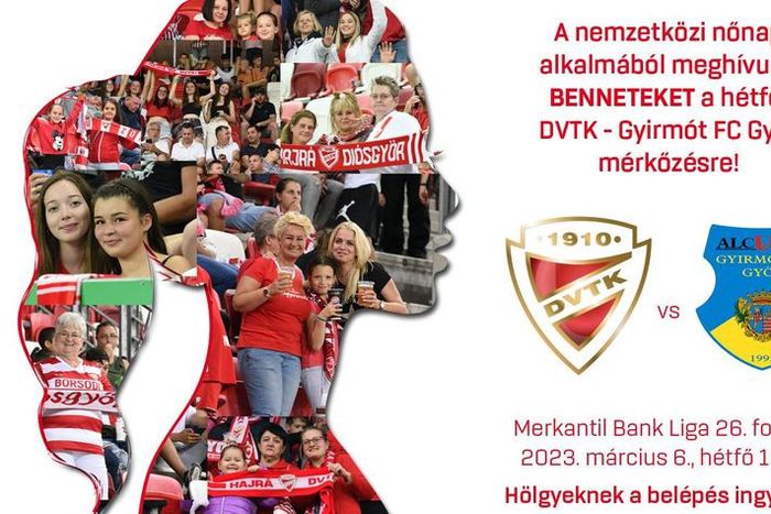 A DVTK-Gyirmót mérkőzést ingyen tekinthetik meg a hölgyek március 6-án.