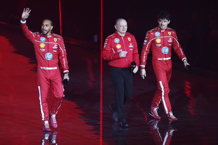 A londoni O2 Arénában szervezett „évnyitóra” minden pilóta stílusosan érkezett meg, köztük a Lewis Hamiltonnal kiegészült Ferrari is.