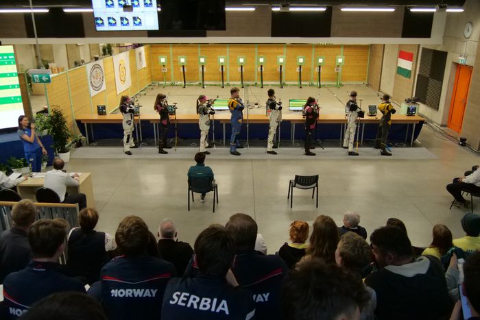 A dobogóra felállhat Ozsváth Réka és Szabó Barna Ádám is, akik a csoportmérkőzések során léptek lőállásba. Ebben a korosztályban vegyes csapatok versenyeztek mindkét szakágban az érmekért. A kvalifikációs versenyek után már a legjobb nyolc-nyolc együttes jutott el a budapesti kontinensviadalra.