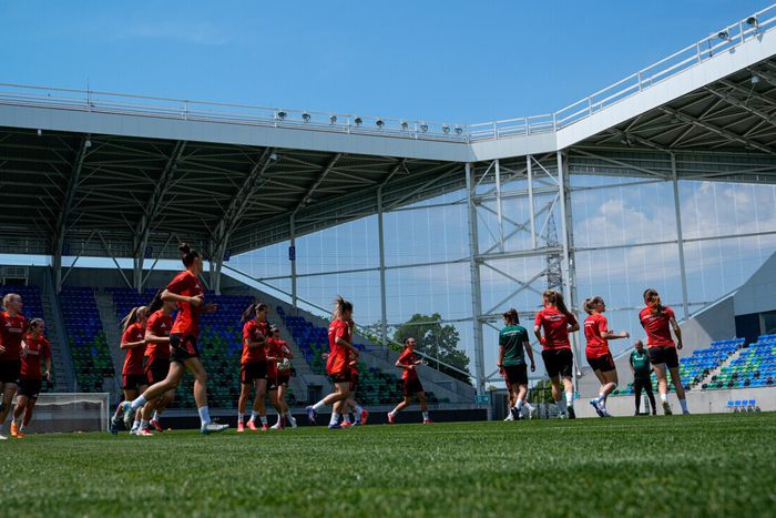 Szarvas Alexandra szövetségi kapitány együttese már a Szent Gellért Fórumban edzett. (Fotó: mlsz.hu)