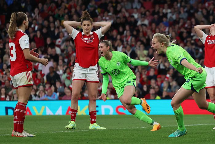 A Bundesligában második helyen álló Wolfsburg és az angol Szuperligában jelenleg csak negyedik Arsenal alapvetően hasonló játékerőt képvisel, de mivel a londoni együttesnek számos alapembere sérült – így például első számú gólvágója, Vivianne Miedema, valamint a tavalyi Európa-bajnokság legjobbjának megválasztott Beth Mead is –, a német alakulat számított a párharc esélyesének. Éppen ezért volt nagy bravúr az „ágyúsoktól”, hogy az elődöntő első meccsén kétgólos hátrányból felállva 2–2-es döntetlent harcoltak ki Németországban.