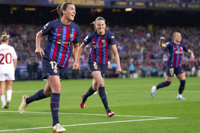 A legutóbbi idényben döntős Barcelona a múlt héten csaknem 40 ezer néző előtt 1–0-ra nyert idegenben az olasz bajnoki éllovas AS Roma ellen. A hazai visszavágóra több mint 54 ezer szurkoló volt kíváncsi a Camp Nouban, ahol a katalánok már a szünetre háromgólos előnyt építettek ki maguknak – a múlt szombati el Clásicon győztes gólt szerző Fridolina Rolfö két találata között az egyik középhátvéd, Mapi León lőtt egy óriási gólt.