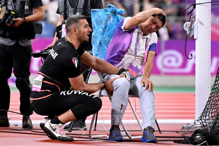 Ijesztő pillanatokat élhettek át azok, akik az Ázsia Játékok atlétikaversenyein a férfi kalapácsvetés döntőjét nézték a hétvégén. Egy kuvaiti versenyző kezét elhagyó szer ugyanis súlyos sérülést okozott az egyik versenybírónak.