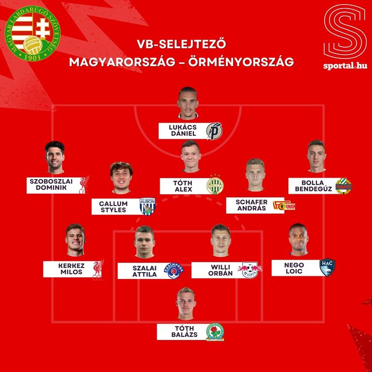 Lukács Dániel kezd csatárposzton az örmények elleni vb-selejtező mérkőzésen.